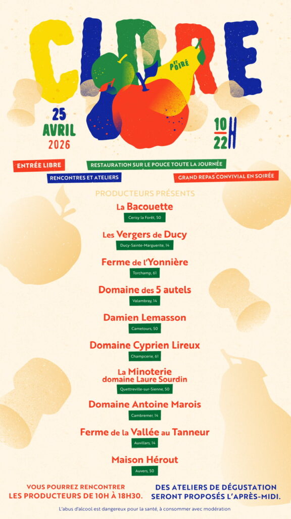Une dizaine de producteurs seront présents issus des 4 AOP normandes (Pays d’Auge, Perche, Domfront & Cotentin), avec des styles bien à eux mais tous talentueux. Venez nombreux pour les découvrir, les goûter et repartir avec vos préférés.